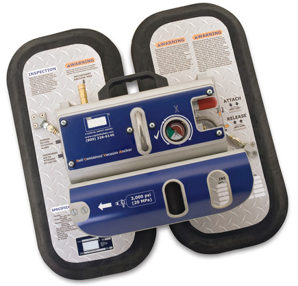 Portable, non-penetrating anchors that use suction to securely attach to smooth aircraft surfaces, enabling tie-off where permanent anchors aren’t feasible.